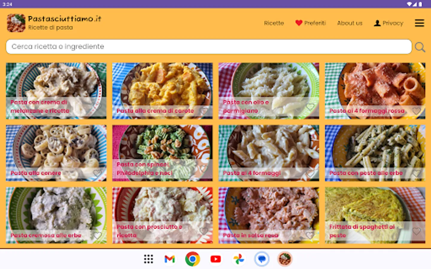Experiment with many new pasta recipes, from the most classic to the most elaborate. With this app you can learn how to cook various types of pasta with always different sauces. You can find pasta recipes with vegetables, meat, legumes, dried fruit, cheese and much more.