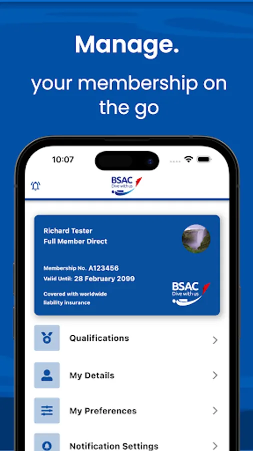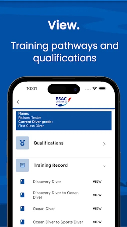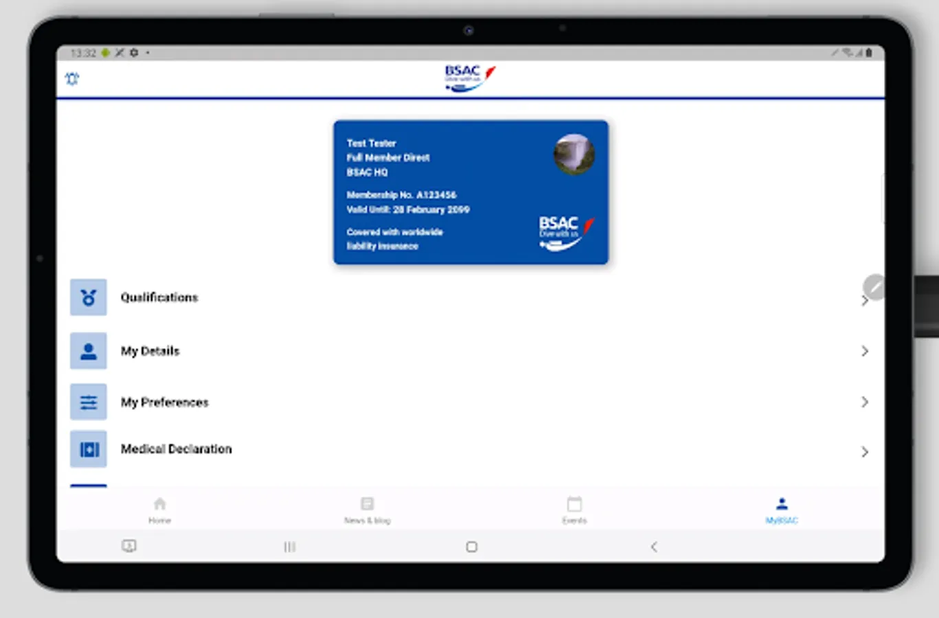 BSAC Members can view their membership card, manage their account, see their qualifications, monitor training progress and update their medical records.
