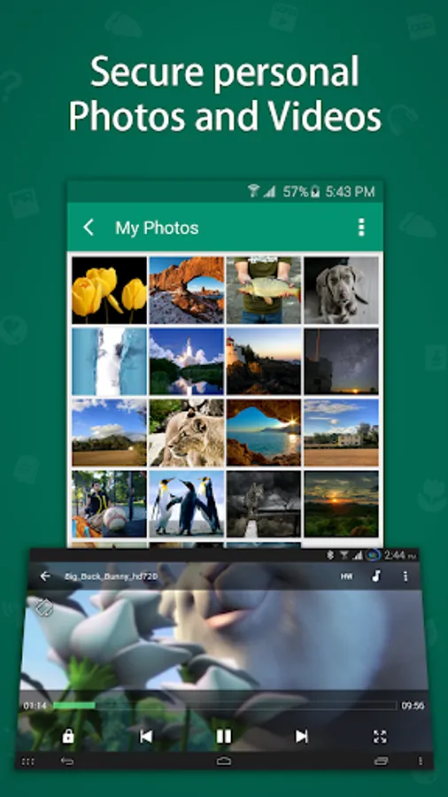 Secured gallery allows you to organize, view and play all your locked images and videos inside a protected and discreet interface.