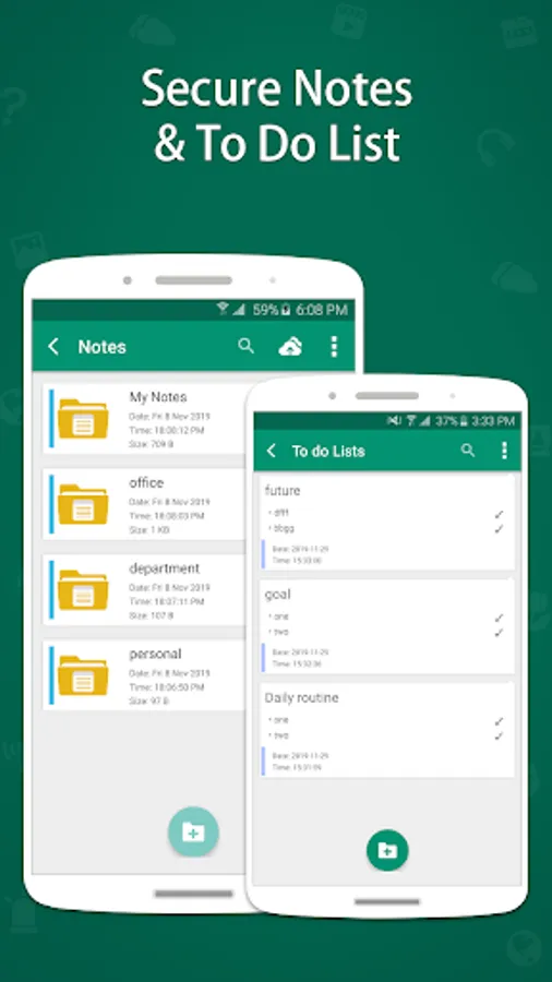 Whether you want to create a list of secret things to do, or write down your private feelings, you can do so securely with the ‘Notes’ feature.