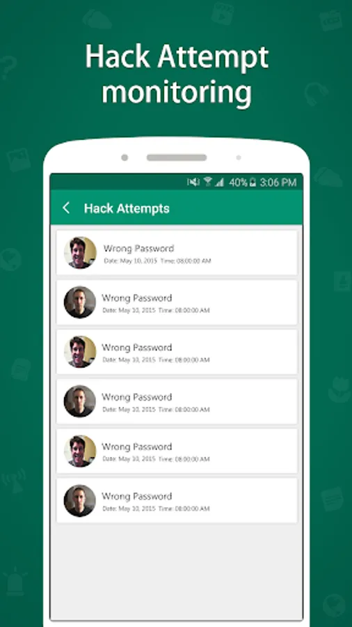 If an unauthorized person tries to access your app with invalid credentials, the hack-attempt option captures the image of the culprit.