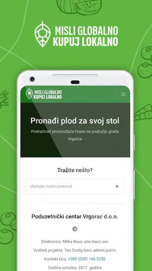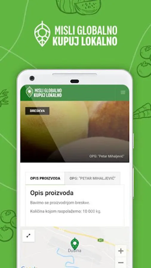 With the application you can easily find local OPG products: fruits, vegetables, honey, olive oil, etc. It is also possible to contact local OPG staff and make an order. Purchase Homemade - OPG Fruits and Vegetables is the result of work on the project "Think globally, buy locally". The project "Think globally, buy locally" was designed to encourage the purchase of domestic agricultural products. One of the main goals of the project is the presentation of local products of local producers of fruits, vegetables, honey, olive oil, meat and products such as pekmez, wine, liqueurs and similar products mostly from the production of local family farms and trades to domestic / local buyers and customers from Makarska riviera, and unifying the available products and quantities under the aegis of the website and the Android application, we will try to get together in the wider market.