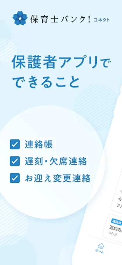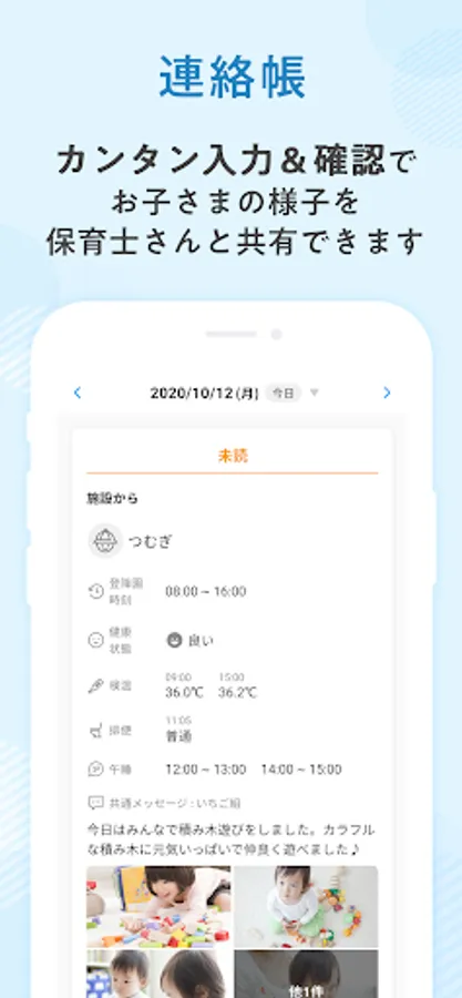 ・ Contact book function: Contact book function: You can more smoothly exchange daily information about your child at the nursery facility or at home from your smartphone.