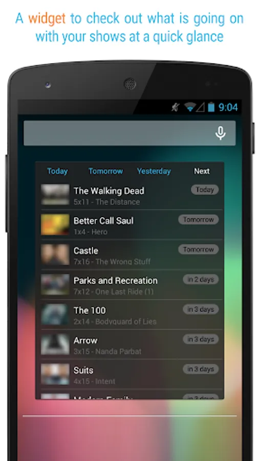 WIDGET - see what's recent and what's next from your shows in a quick glance.