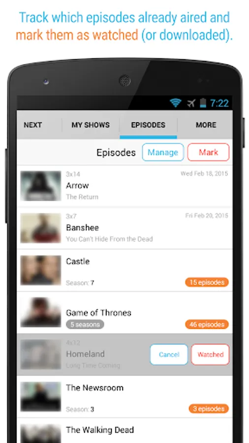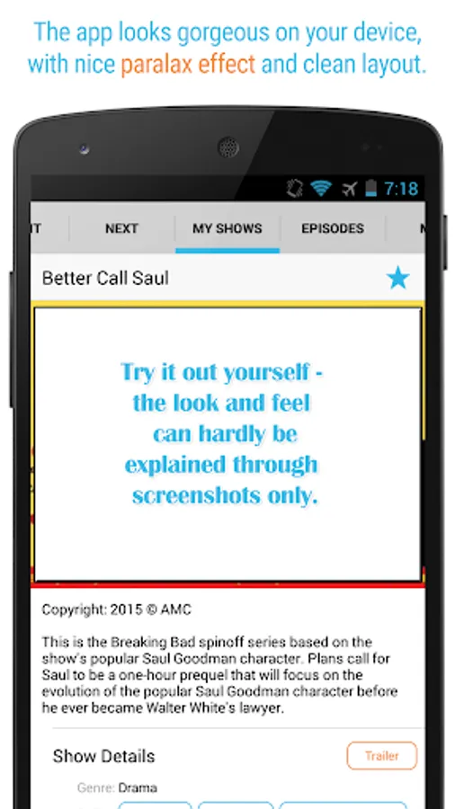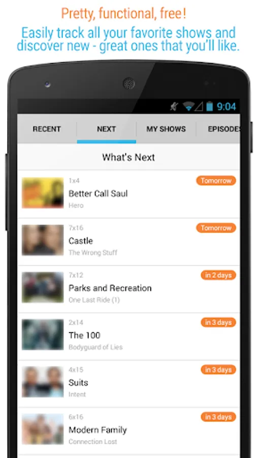 Take a look at the screenshots and the great rating that our users give us - and start using Next Episode to track your shows and movies today!