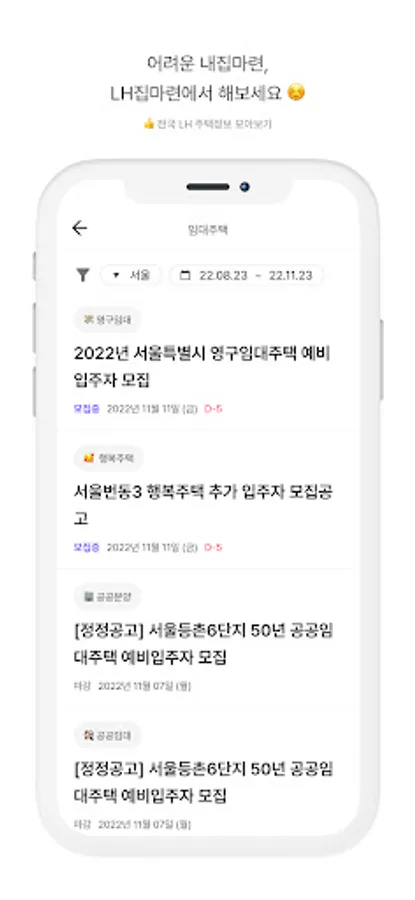 - Easily check detailed categories such as public sales, happy housing, national rentals, public rentals, and permanent rentals!