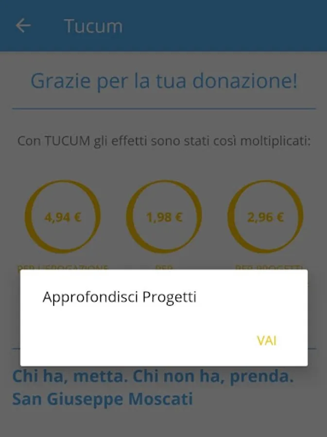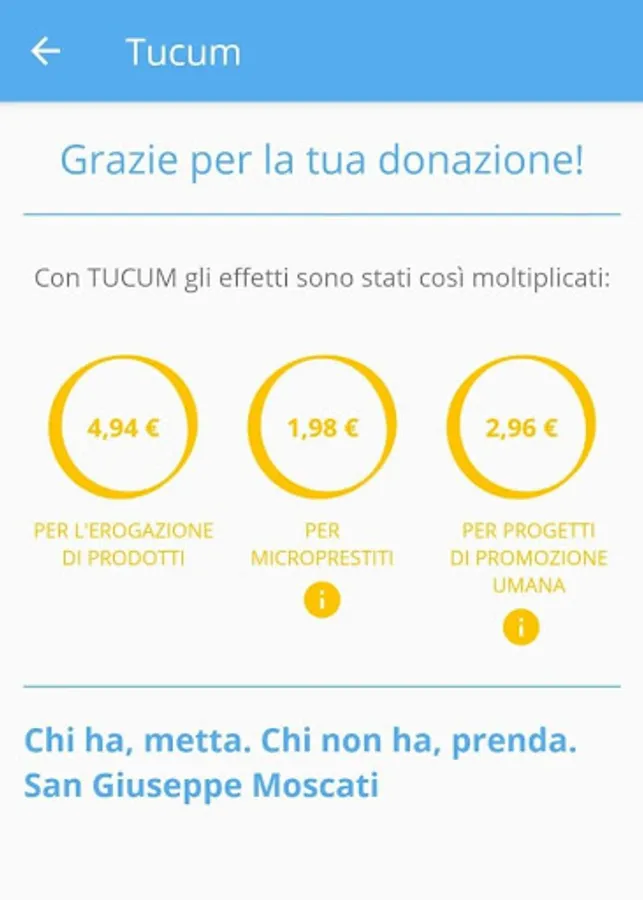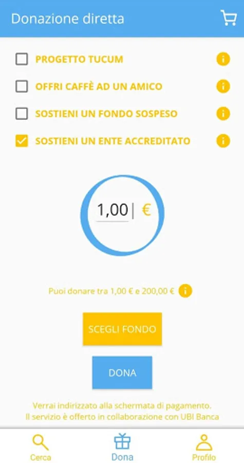 1. Donor users can donate via credit and prepaid cards starting from € 0.20. If you choose the OneClick payment method, the donation takes place in a few seconds.