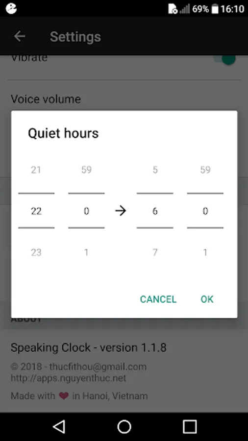 Speaking clock is a free application. Using the app to give you voice announcements means you do not have to watch the clock to know the current time.