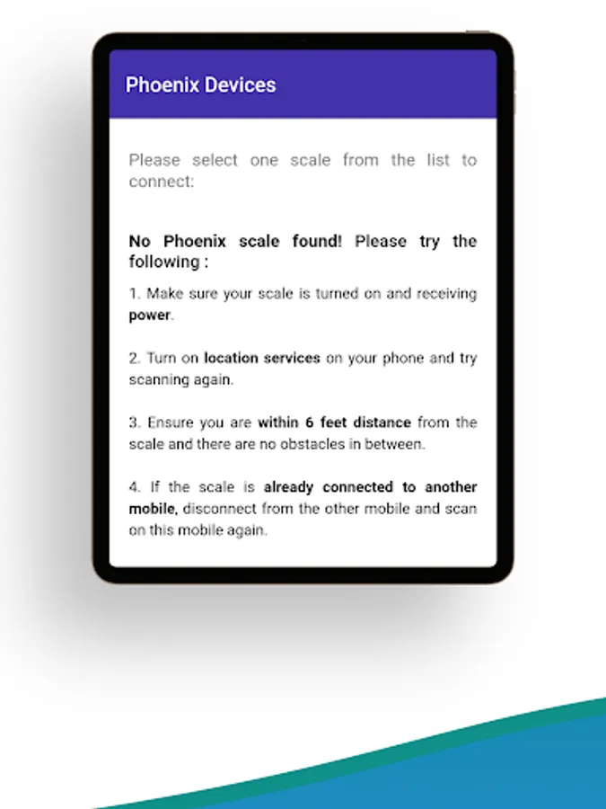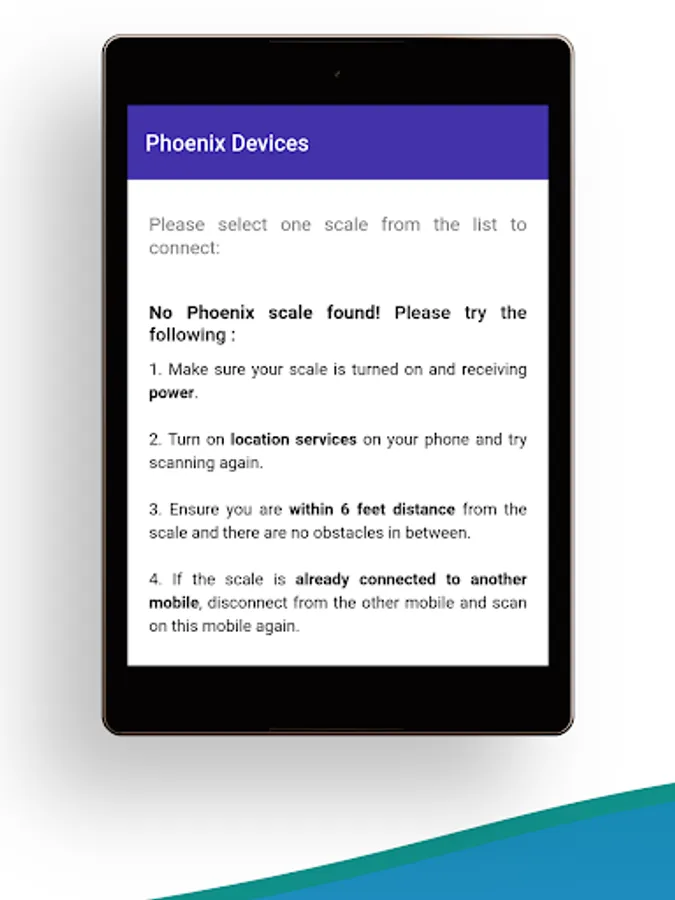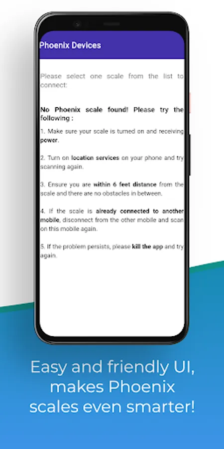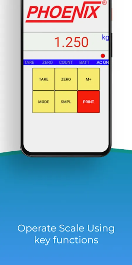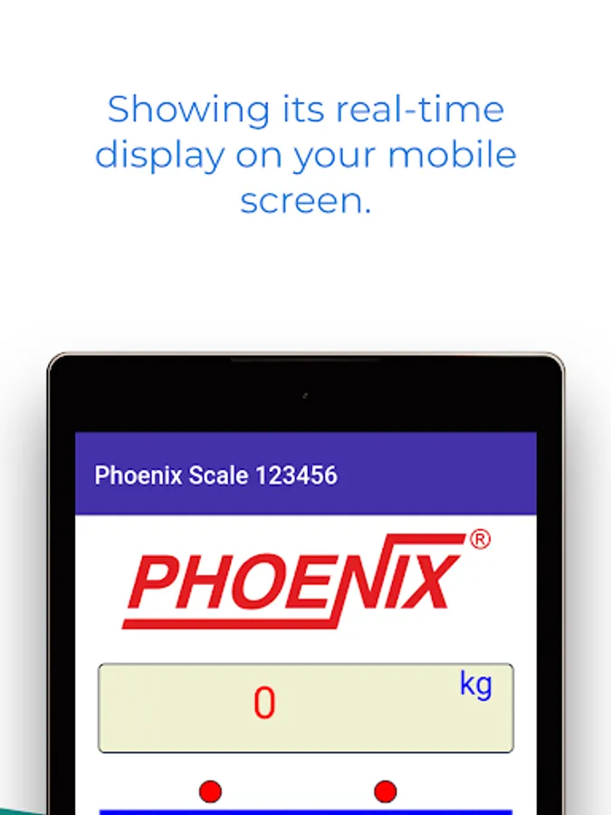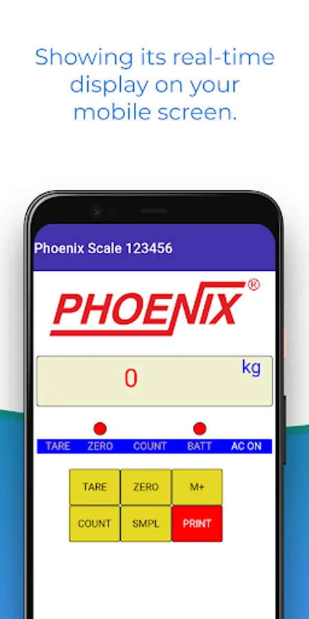 It can connect to any of your Phoenix scales via Bluetooth. It enables you to remotely control the scale showing its real-time display on your mobile screen. You can also operate the scale using key functions through the app.