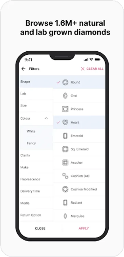 Diamond Search - search for diamonds as seamlessly as you do on desktop using the intuitive filters to find the perfect stone.