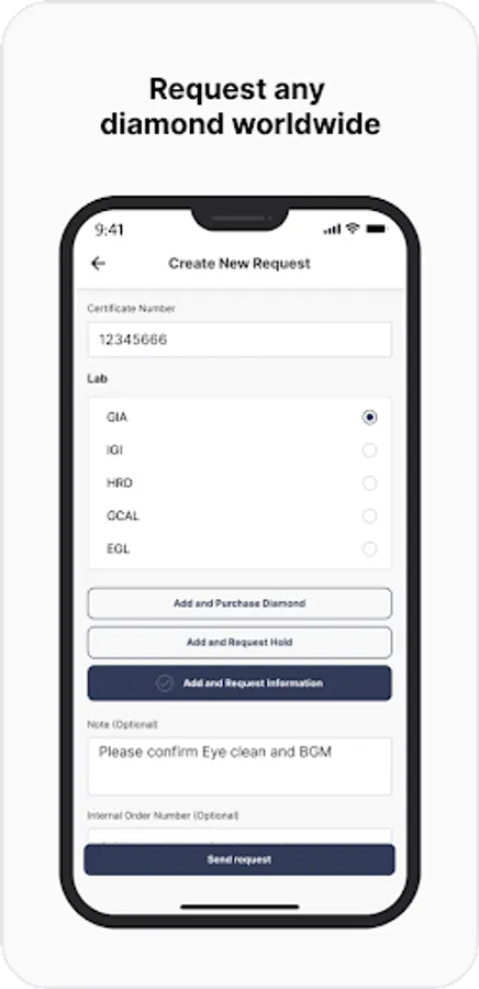 Information Requests - need further details on specific diamonds? Request eye clean, bgm data, images and videos directly from the app and Nivoda will follow up to get you the information you need.