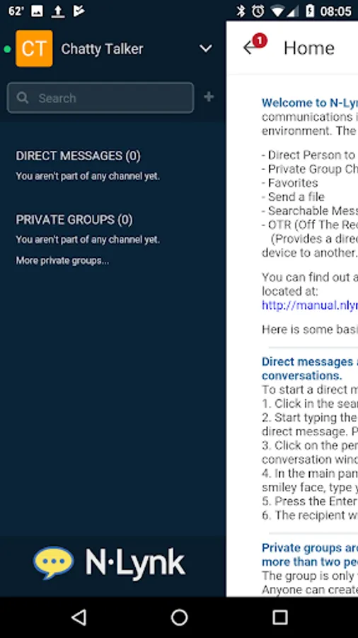 NLynk provides for excellent team communications in a simple, powerful and secure environment. Features include: Person to Person Chat, Private Group Chat, File Attachment, Searchable Message History, OTR (Off The Record) Person to Person Chat (direct encrypted connection, no history). NLynk membership is granted through private channels.