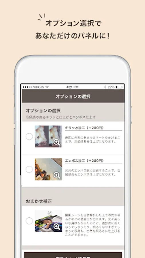 It is an application that you can make a photo panel crisply using photos in your smartphone. You can choose from four different sizes, 14 cm, 18 cm, 25 cm in size, or A3 size together. Operation such as photo selection and trimming is very smooth! With "stock function" you can save panels created with the application once. Immediately you can move to cart and purchase is also OK, but when you have plenty of money and time transfer it to your cart and purchase! Anything is possible. We will also distribute application-specific campaigns and deals. It is an application version of "Yukaku Panel" which is used in various scenes such as interior, welcome board, gift and so on. Please use all means.