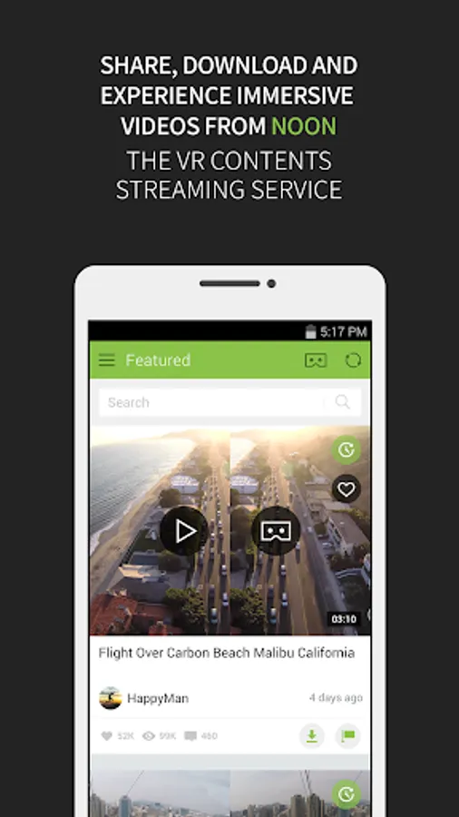 With NOON app, users can browse and watch all the videos stored in the phone/PC in VR space.