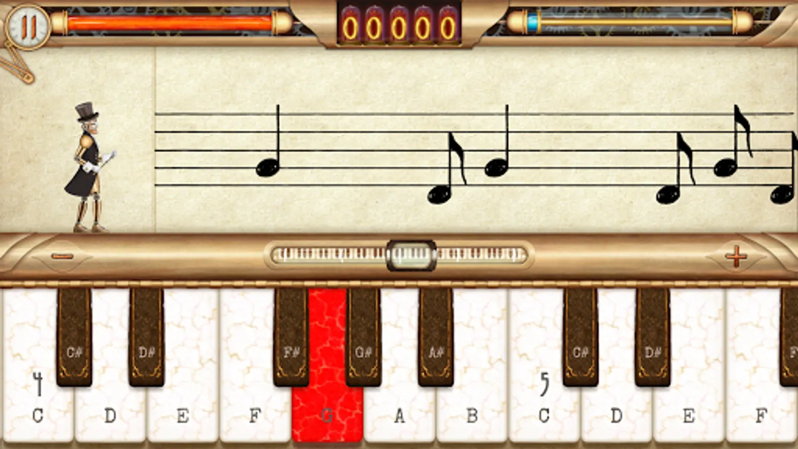 A challenge on every note is what this game is all about. Practice your combat skills and your note reading abilities in true steampunk style!