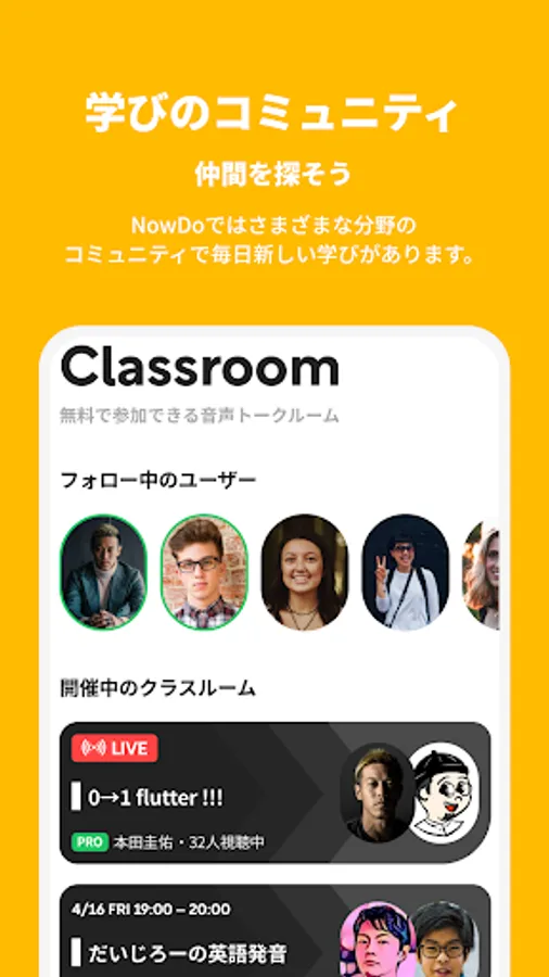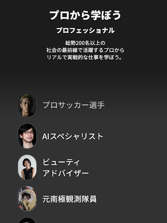 You can expand your possibilities through voice calls with working people who are active at the forefront of the industry called professionals, and acquire solid skills through the learning community such as programming, design and language.