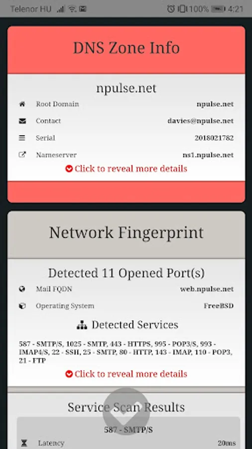 - Host Fingerprint, DNS Info, Portscan, Service Scan