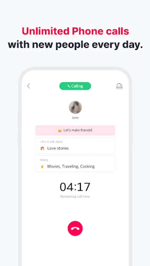Make unlimited phone calls with new friends without revealing your profile. You will be surprised how fast you can get close to each other in such a short time.