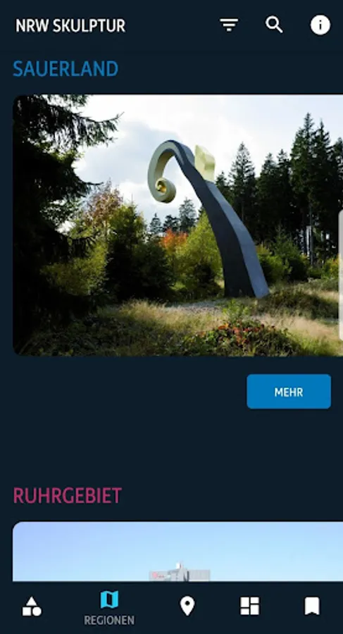 The NRWskulptur-App presents a constantly growing selection of outstanding art in public spaces, which not only get their money's worth for those interested in art, tourists and (cycling) hikers. The latest version of the app now also has a sculpture radar that can be used to find all the listed works of art in the vicinity at the push of a button. In addition, push notifications will now provide information on news about art in the public space of NRW on request.