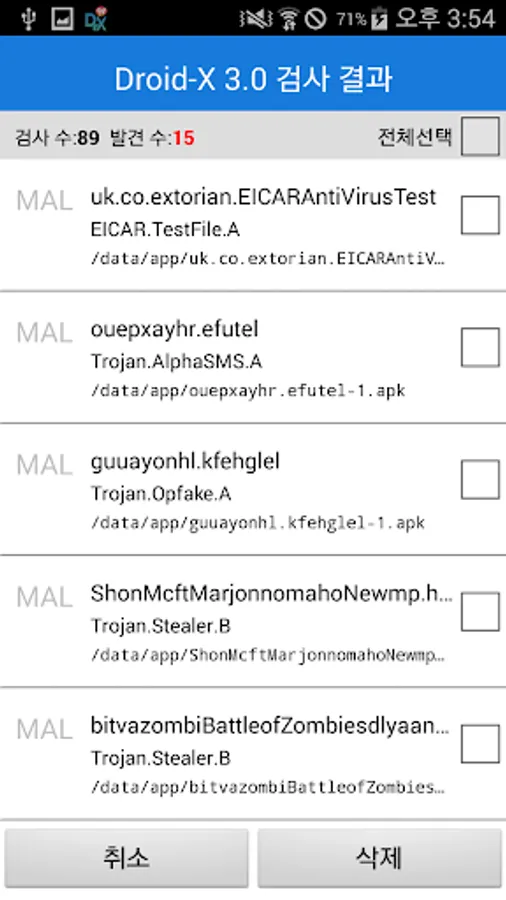 □ Real-time Scan: diagnosing a variety of malicious code attacks the Android platform through the inspection process.