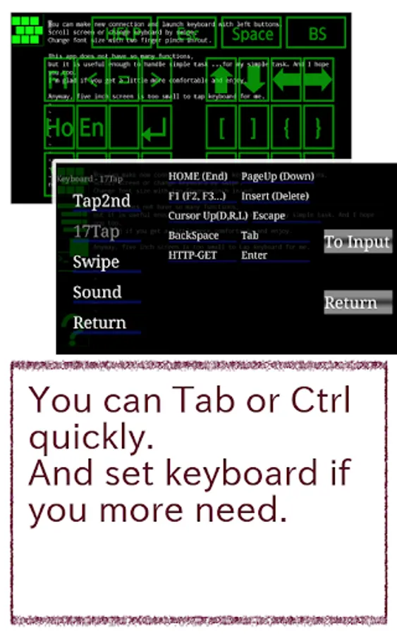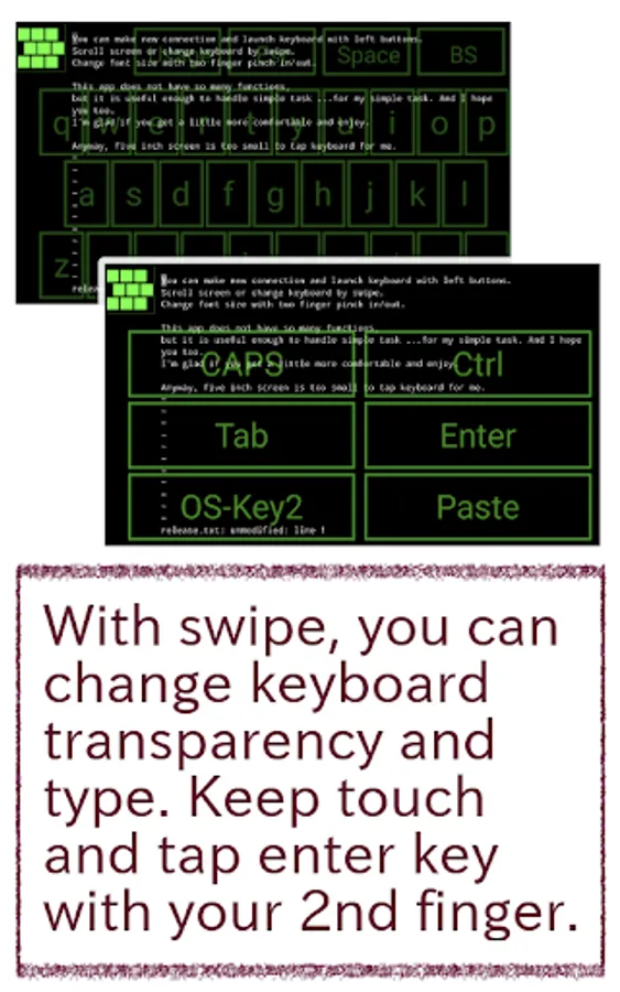 If you feel difficulty to touch keyboard on small screen (like a 5 inch device), this app will help you.