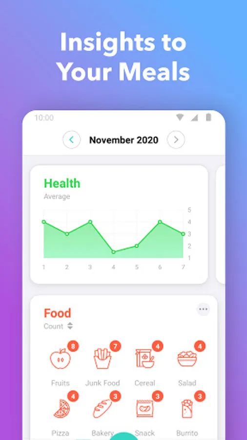 After a few days, you start to see your entries in charts and insights. Find out how often you eat something, how much water your drink, or the typical healthiness of your meal. See how your food influences your symptoms.