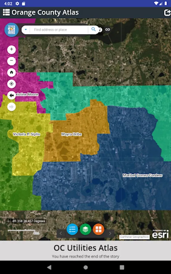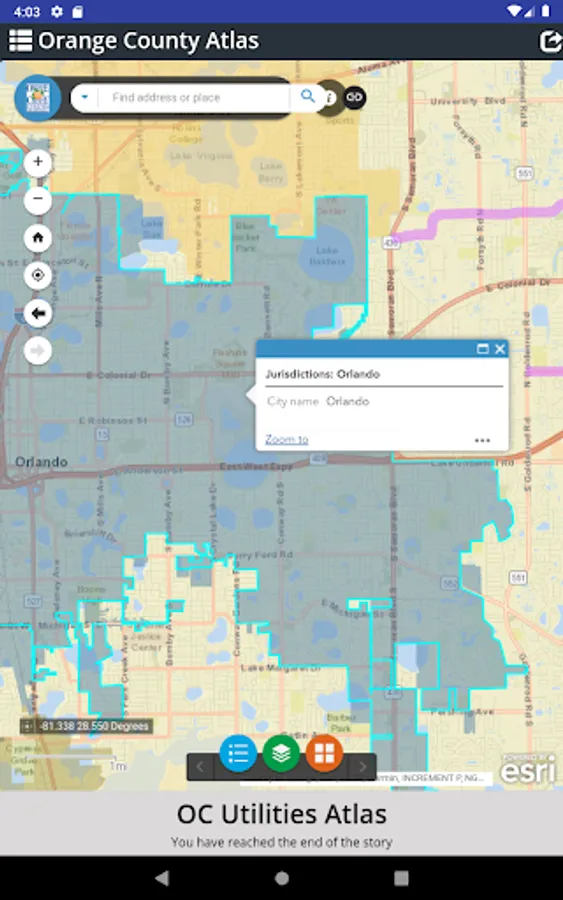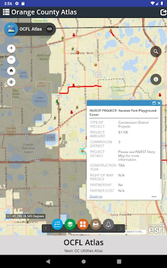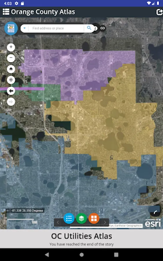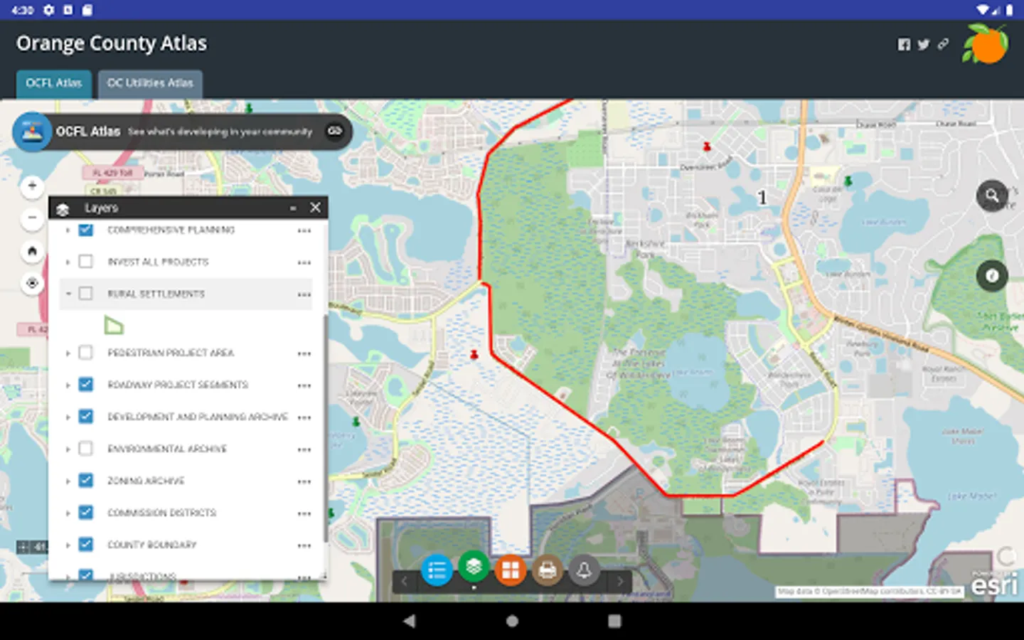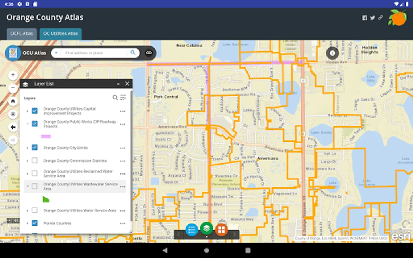 OCFL Atlas is an application that encourages citizens to become more engaged in the growth of their community by pinpointing new construction projects in Orange County. This app offers citizens the ability to access real-time development data, board meeting details and project locations. Users can zoom into their current location, search by address or pan around Orange County to see new projects. Public notification is required for development applications to ensure citizens have the opportunity to express opinions prior to a public hearing. OCFL Atlas is designed to work on most devices including desktop computers, smartphones and tablets.