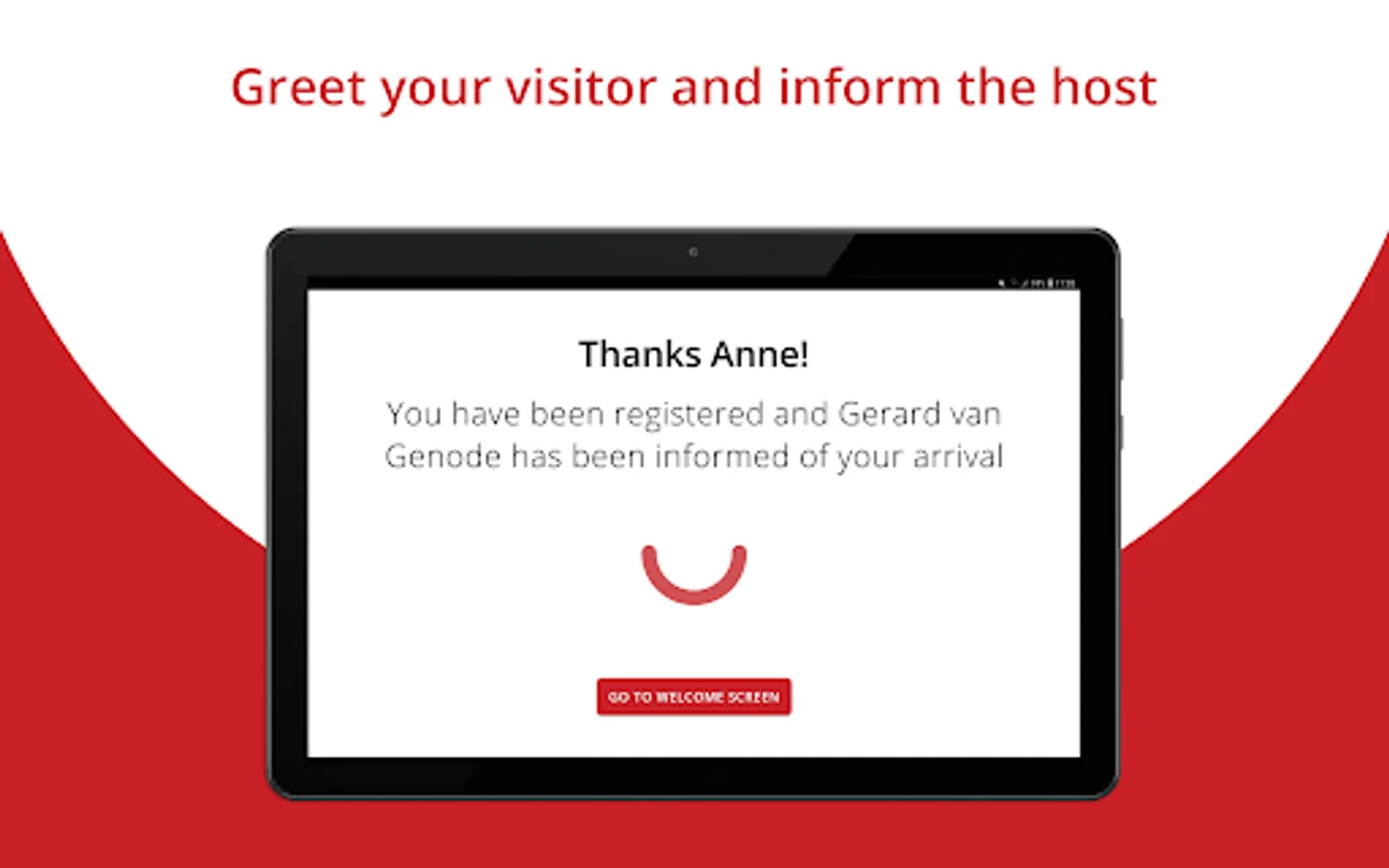 Our kiosk apps enable the visitor to checkin via our self service kiosks. You will receive a notification by email or push notification when your guests checked in.