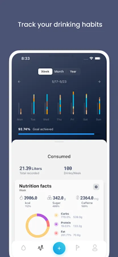 With just a few clicks, you can save your drinks and monitor your hydration.