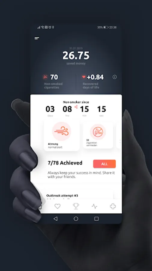 With our innovative features, you have the best chance of successfully becoming a non-smoker. During your smoking cessation you will achieve a lot of success in a very short time with the Flamy app. Make Flamy your quit smoking companion today and finally become smoke-free.