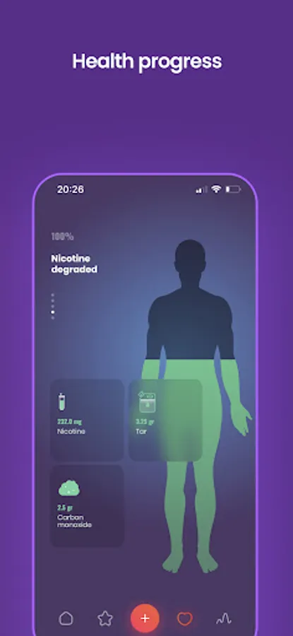Get insights into your body's detoxification and regeneration while you're smoke-free and track how your health improves from 0 to 100%