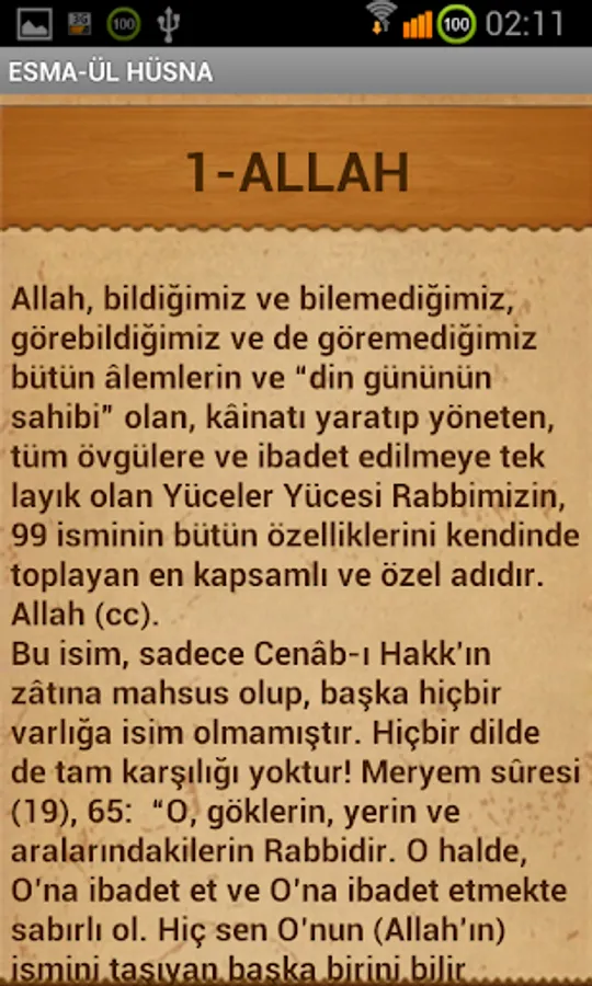 The information in the broad explanation section of this application has been quoted from the book named Esma-i Hüsna (Journey to the Vedud in the Eternity of Truth), whose author is Mr. Vuslat Turabi and whose editor is Mr. İbrahim Ethem Gören, on the condition that no worldly provisions are taken into consideration and with the condition of permission. It was published with our thanks and prayers to the author, Editor and all the Truth Travelers who contributed.