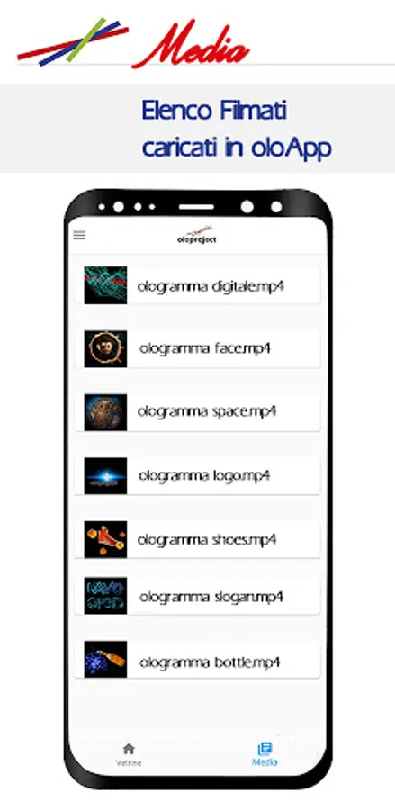 App. To manage preloaded contents and reproduce them on Oloproject holographic showcases