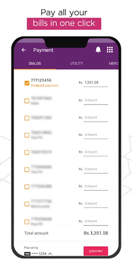 Save your petty cash. Enter your Visa/Master card into the My Dialog app to make convenient payments anywhere, anytime.