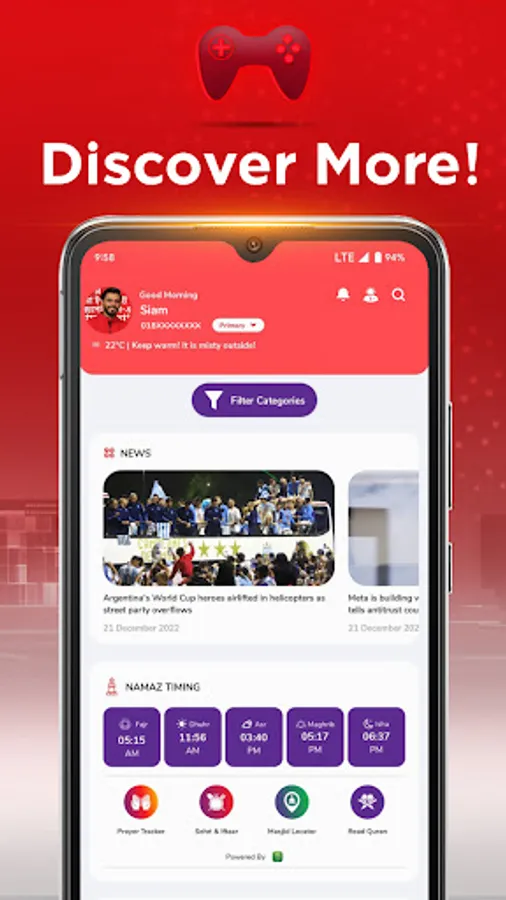 Weather, News, Games, Live Streaming, Travel Tickets, Online Shopping, Namaz Timing - all you need at your fingertips!