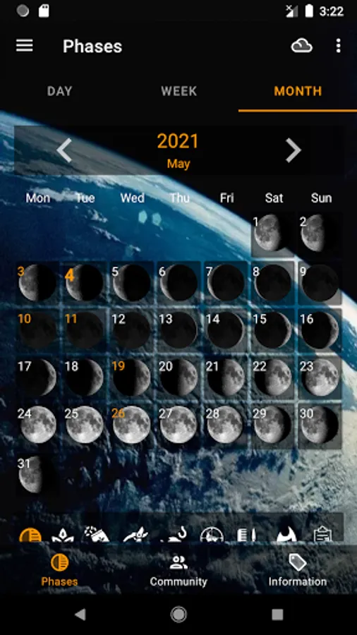-Phases for each day in the moon cicle: Now you have a diferent moon for each day in the moon life cicle