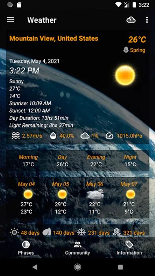 Moon Phases v5, shows the current Moon phase. You can see the Moon phases, day by day, the month and see a lot of information about the current Moon phase.