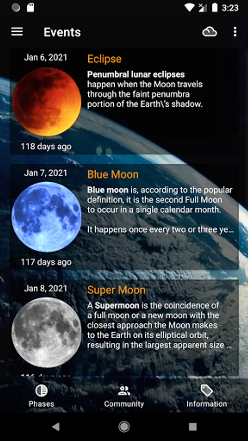 -Alerts of phase changes, Notifications about BlueMoon, Eclipses, and more...