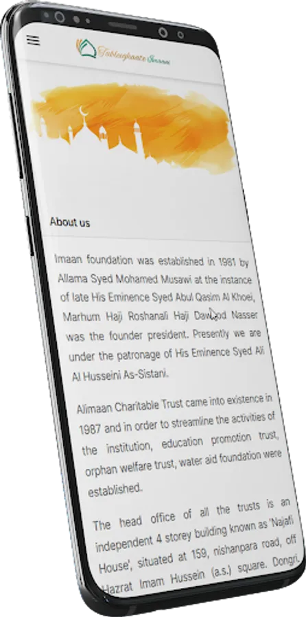 The Imaan Foundation has been actively contributing to educational and charitable initiatives since its establishment in 1981 by Allama Syed Mohamed Musawi, under the guidance of the late His Eminence Syed Abul Qasim Al Khoei. The foundation's founder president, late Haji Roshanali Haji Dawood Nasser, played a pivotal role in its early years. Currently, the organization operates under the patronage of His Eminence Syed Ali Al Husseini As-Sistani, continuing its mission of serving the community.