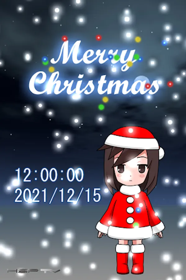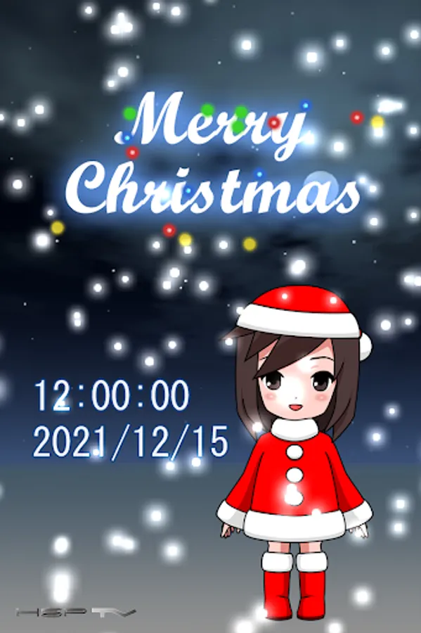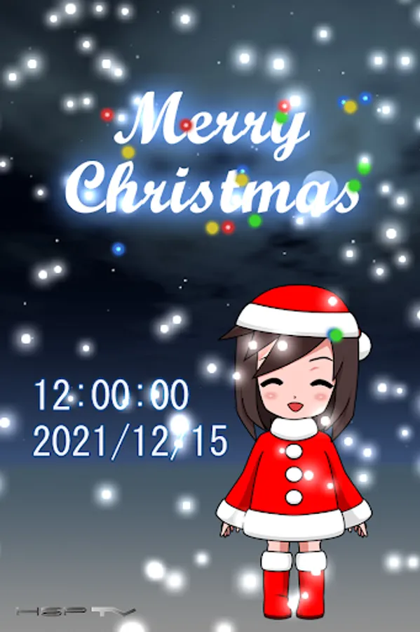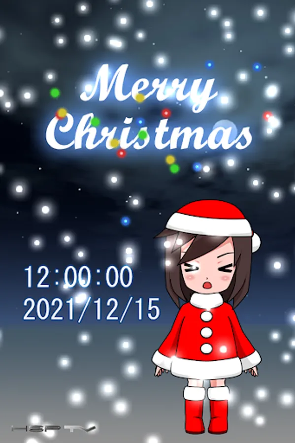 This is an app in which the mascot character "Tamane-chan" of the programming language HSP3, which can develop games and apps, announces the date and time in Christmas costumes.
