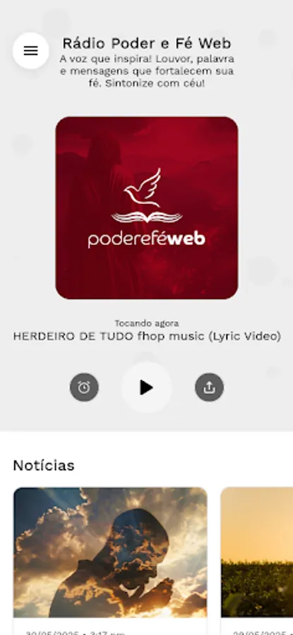 - Set an alarm clock to wake up every day listening to Rádio Poder e Fé Web