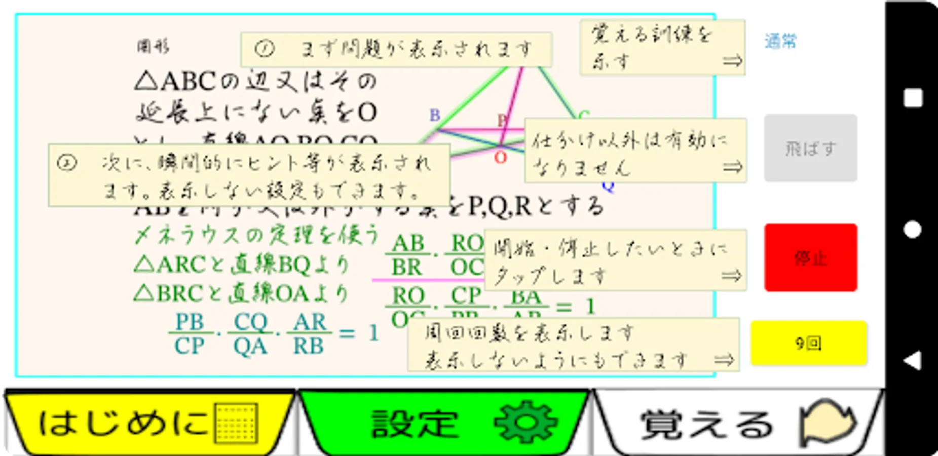 This app was created with the image of a memorization card that allows you to display hints and other formulas that should be memorized in Math A so that you can easily remember them.