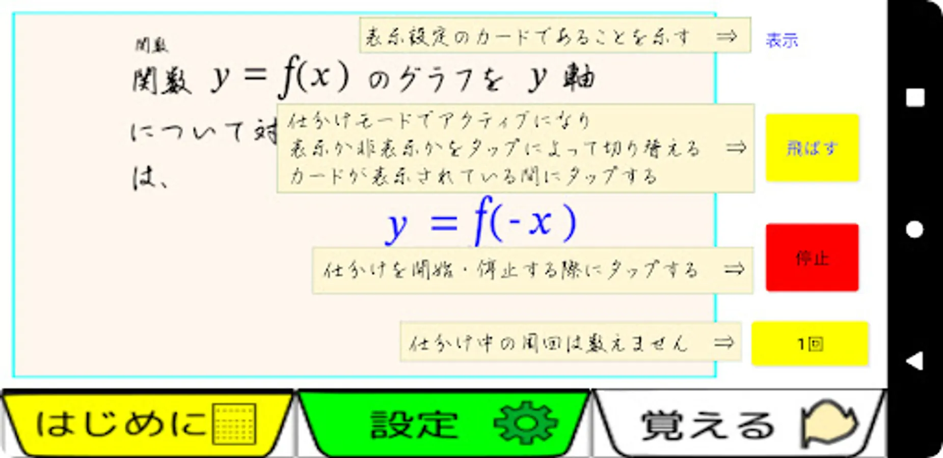 This is a trial version / evaluation version of "QM Memorization e-card High School Number I". This app was created with the image of a memorization card that allows you to display hints and other formulas that should be memorized in Math I so that you can easily remember them.
