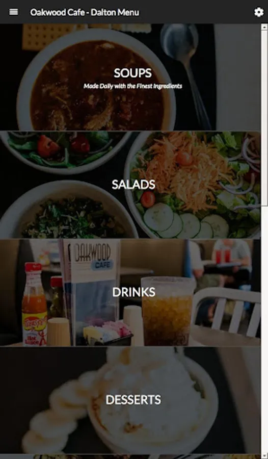 "Enjoy Family Dishes At Our Family Restaurant" The 1940s were a time of great change in the United States. It was in this environment that Johnny and Mary Metcalf took over a 30-year-old diner called Oakwood Cafe and moved it to Culyer Street in Dalton, Georgia, where it still operates today. In 60 years, not much has remained the same in America, but one thing holds true: people enjoy a great homemade meal in a family friendly restaurant. Oakwood Cafe provides the ideal setting for both. Each meal starts with your choice of a wide selection of some of the best meats around, including Georgia's finest BBQ, and all are served with the perfect complement of your choice of homemade southern vegetables and sides. One taste and you will understand why we say with confidence, "If you don't feel like family, let us know."