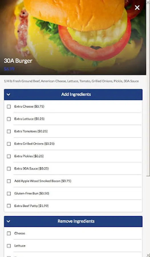 Now you can order online and skip the line! Pick-up and delivery options, rewards and more. Install the 30A Burger App for online ordering, exclusive offers & coupons and more, right on your mobile device.