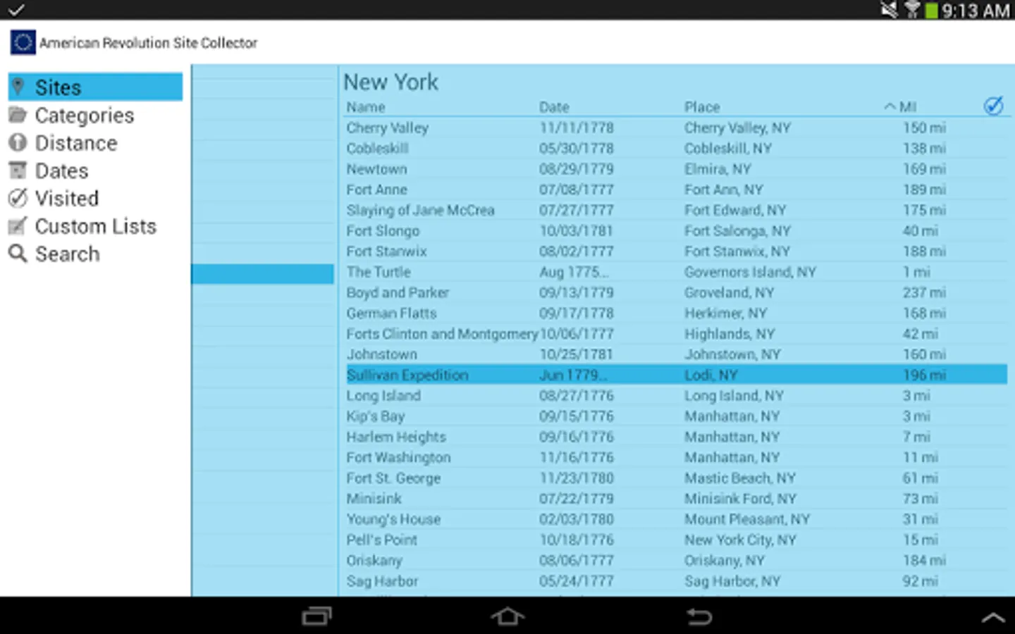 Find and explore famous and little-known American Revolutionary War battlefields. If you love history or geocaching you'll love this app. Visit battlefields where your ancestors fought. Find local historical sites near your home or on vacation.