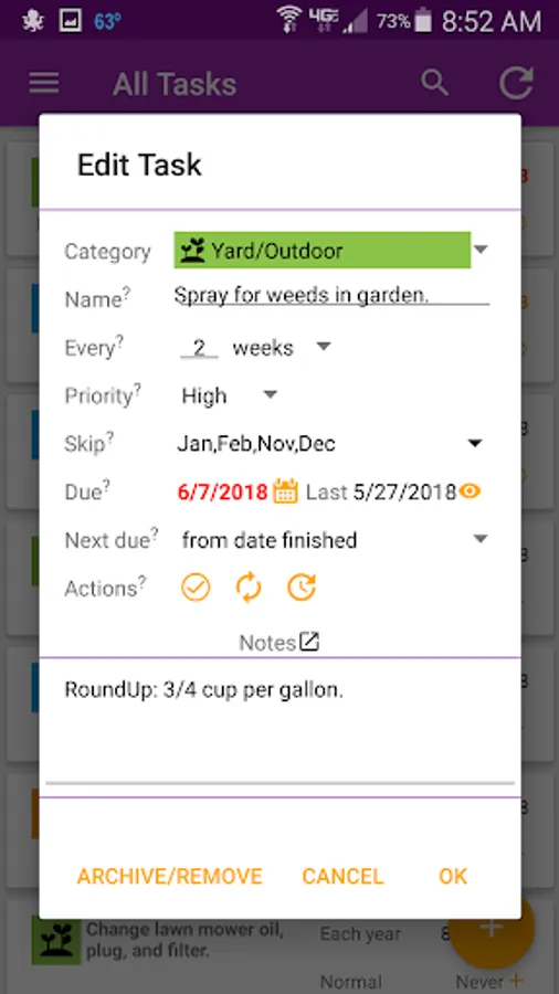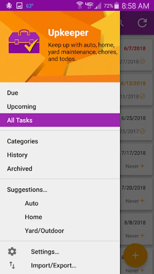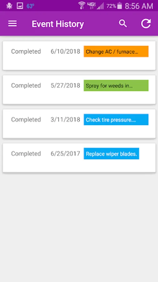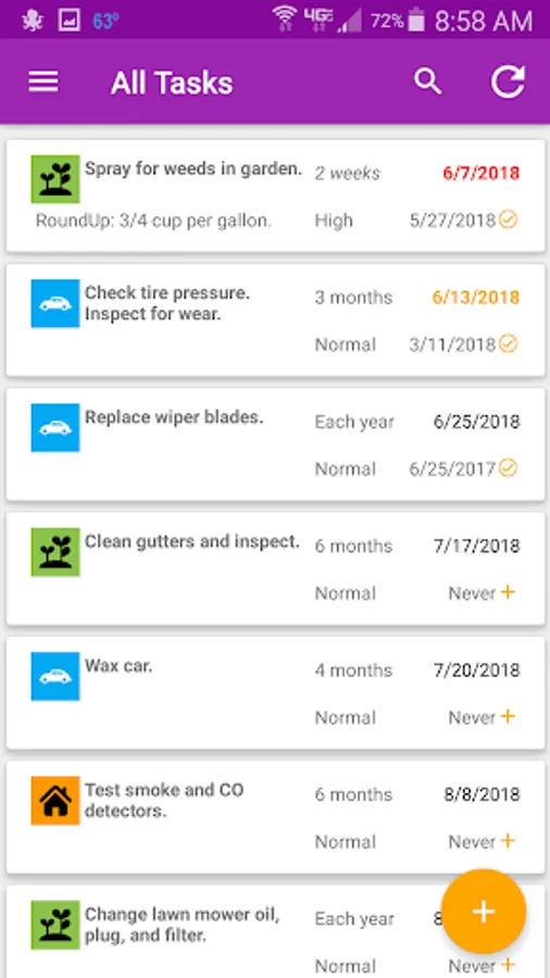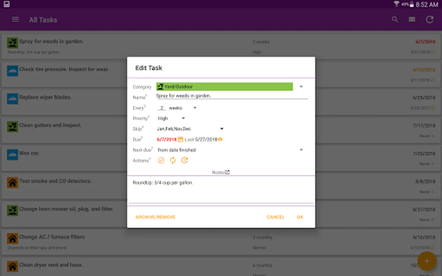 Simple to use personal maintenance manager. Set due dates for tasks and todos and organize them into categories. Receive reminders when items are due based on priority. Make notes, track history, and synchronize across multiple devices.
