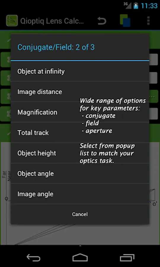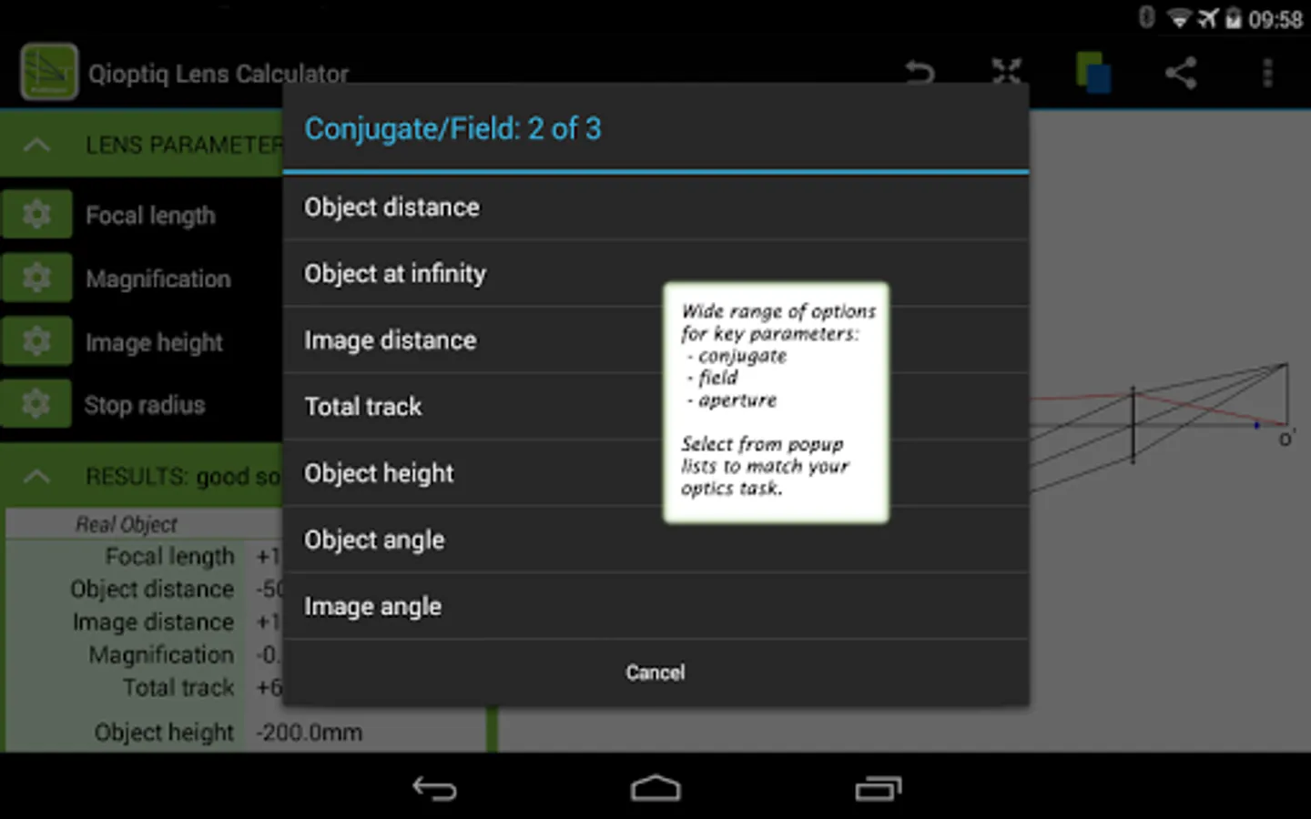 • select conjugate, field & aperture parameters to suit your specific task