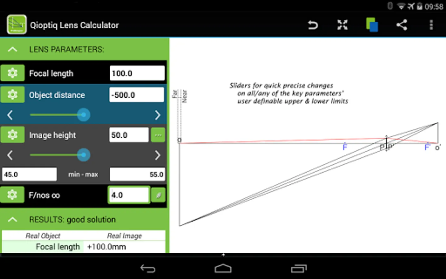 PreDesigner from Qioptiq Photonics is an elegant lens calculator with sliders & touch-editable ray diagram & thin lens nomogram. Visualise key optical parameters and their interactions. Precise calculations for specific design tasks. Your choice of key parameters & units.