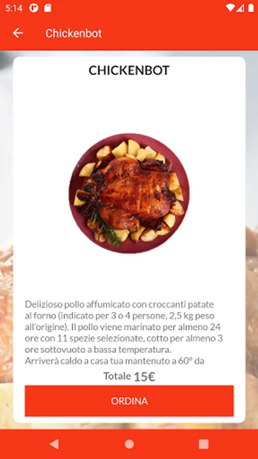 We deliver a healthy chicken for dinner, marinating it in spices, then slowly steaming it and finally roasting it in the oven. The potatoes are roasted with the addition of some natural flavoring. Chickenbot is gluten free